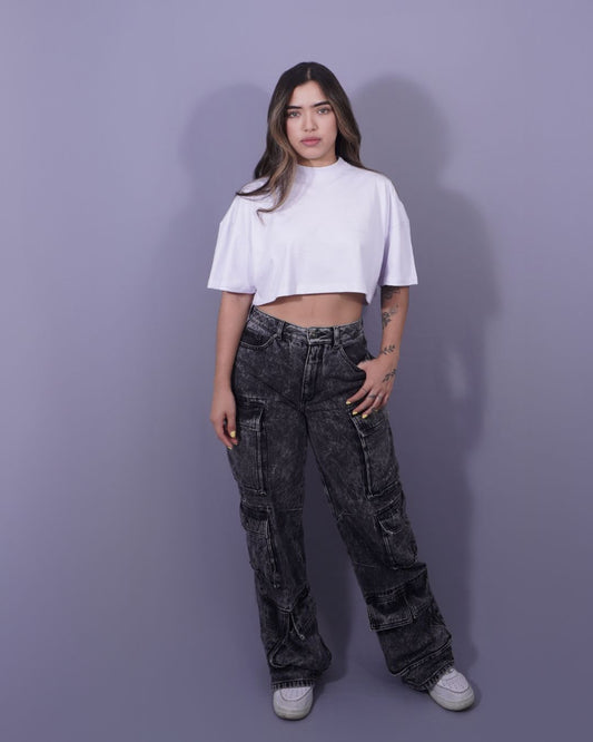 T-SHIRT CROP NEGRA PIGMENTO
