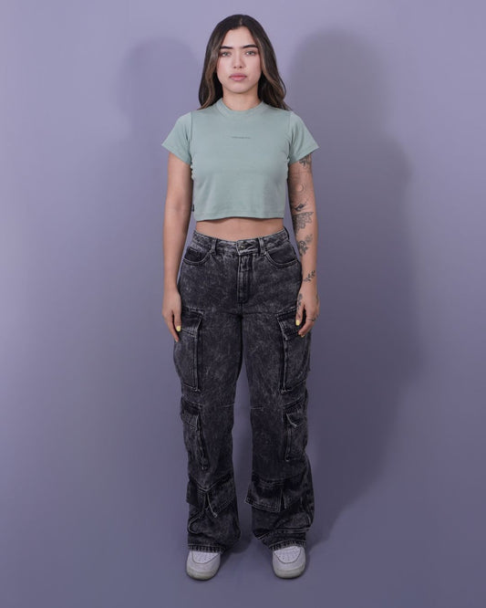 T-SHIRT CROP VERDE PIGMENTO